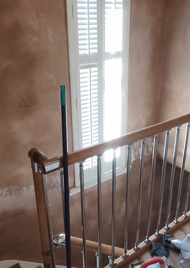 Pablo removed wallpaper, fixed the walls and plastered two bedrooms and staircase, then they installed new skirting, looks nice and bright, good job
